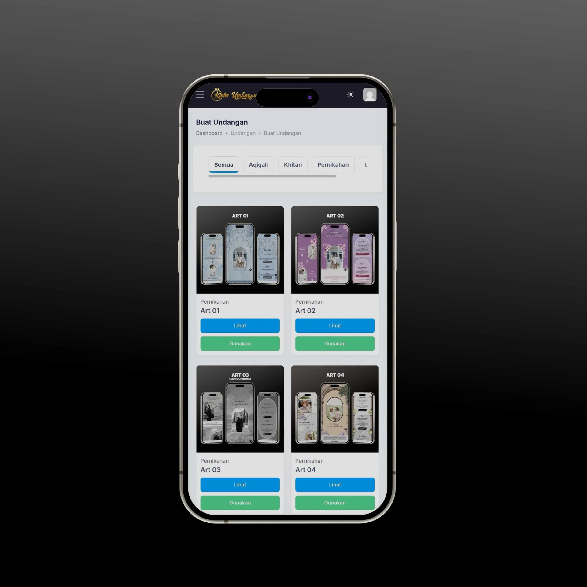 Cocok untuk Kamu yang ingin membuat undangan digital untuk acara apapun. Tersedia Puluhan tema undangan beragam kategori yang selalu di update sesuai permintaan pasar. Mulai dari tema pernikahan, Aqiqah, Khitan, sampai ulang tahun.