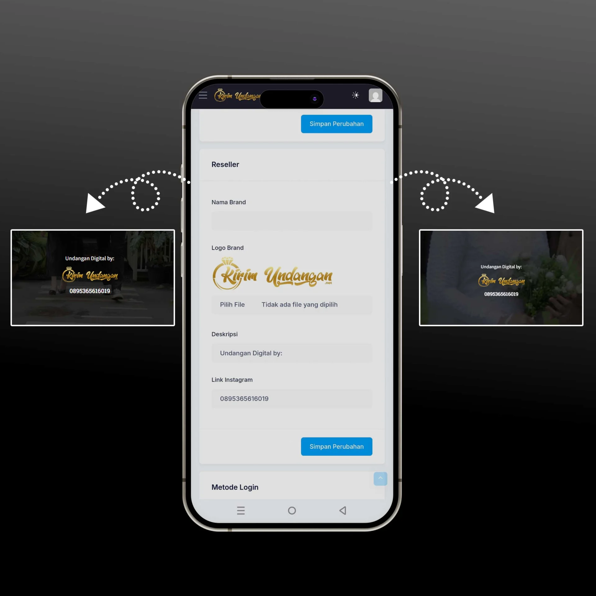 Anda bisa custom logo & copyright di undangan yang telah Anda buat beserta linknya ketika di klik. Anda juga bisa mencantumkan nomor whatsapp yang nantinya akan disebar oleh calon pengantin.